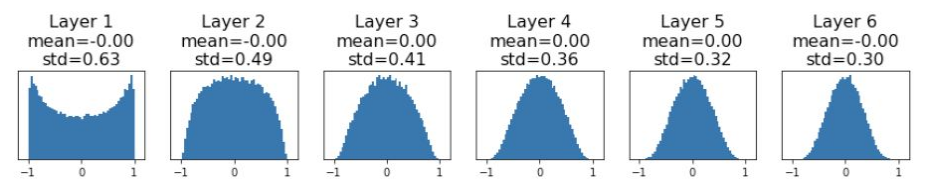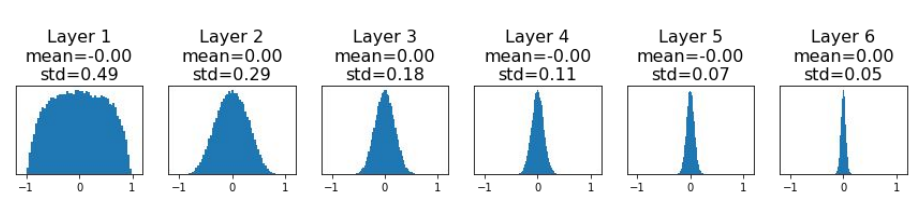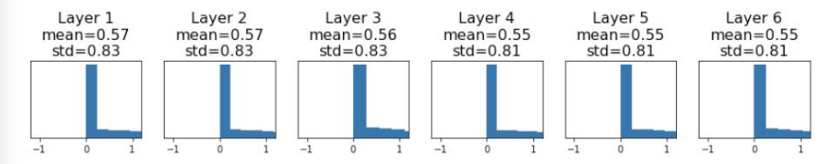 작은 네트워크에서는 그럭저럭 작동할 수 있지만, 더 큰 네트워크에서는 각 층의 활성화 값(activations)이 균일하지 않은 분포를 나타낼 수 있다.